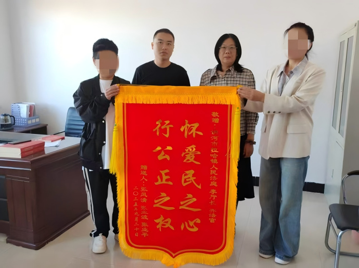 近日,拉哈人民法庭审判员齐云霄的办公室里传来真挚的感谢声,一起机动车交通事故责任纠纷案件的原告亲属将一面写有 “怀爱民之心 行公正之权” 的锦旗送到法官手中,以此表达对法官延伸司法触角、倾力化解矛盾的深深谢意。
