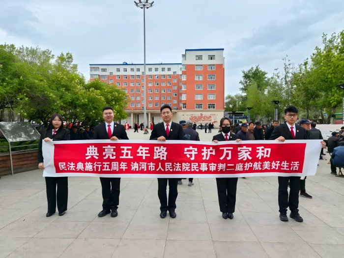 2025年5月是第五个“民法典宣传月”。近日,讷河市人民法院民事审判二庭开展了“‘典’亮五年路,守护万家和”主题普法宣传活动,为辖区带来了一场“法治盛宴”,让《民法典》真正走进群众生活。