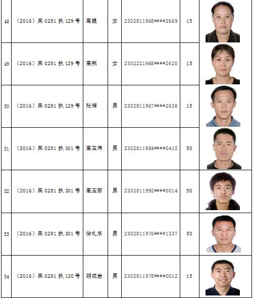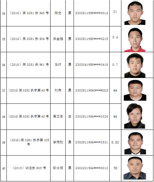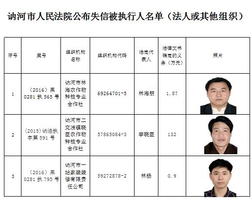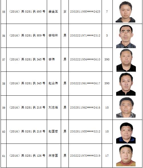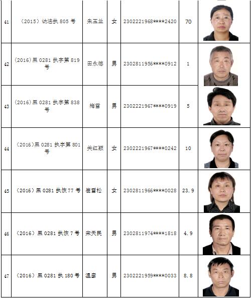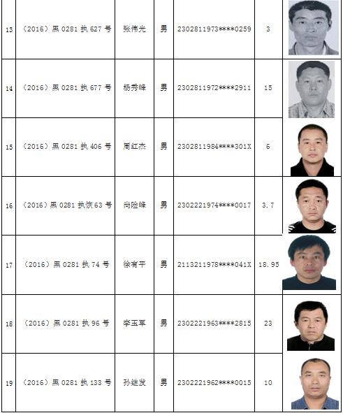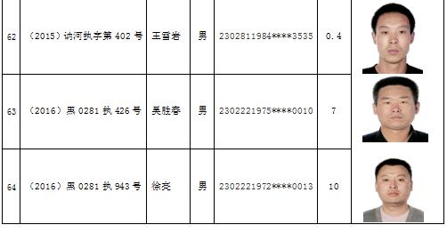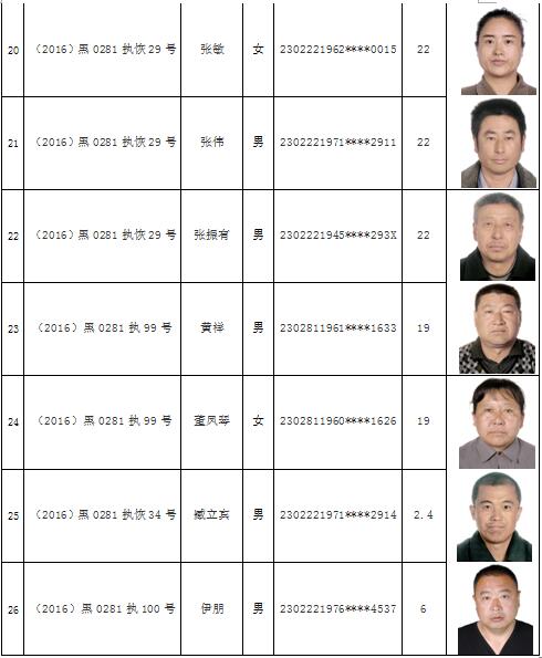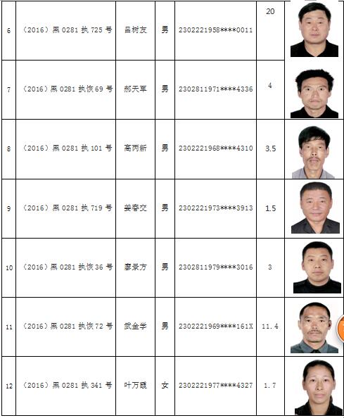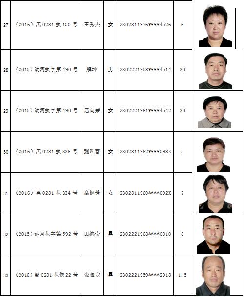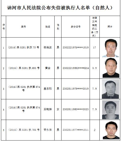 讷河市人民法院公布失信被执行人名单(2016第三期)